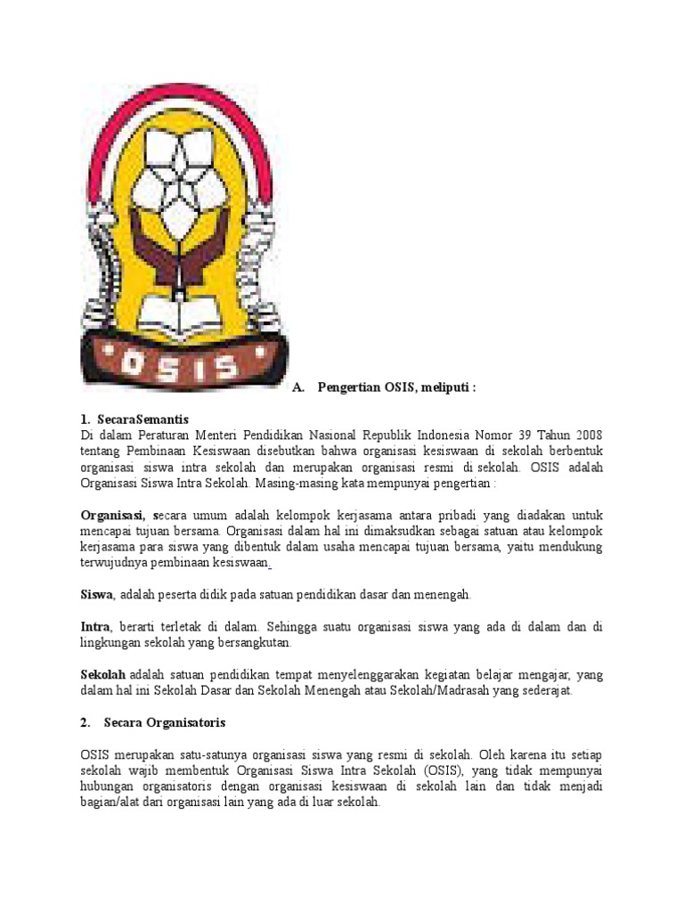 Aturan organisasi siswa intra madrasah. OSIM merupakan Organisasi Siswa Intra Madrasah. Ketua OSIMA MA Lubuk Malako Ummul Haira kepada Harianhaluandotcom Senin 1812021 mengatakan gelaran LDKS diadakan pada Minggu 1712021. Selain itu Osis juga memiliki program kerja yang disusun.