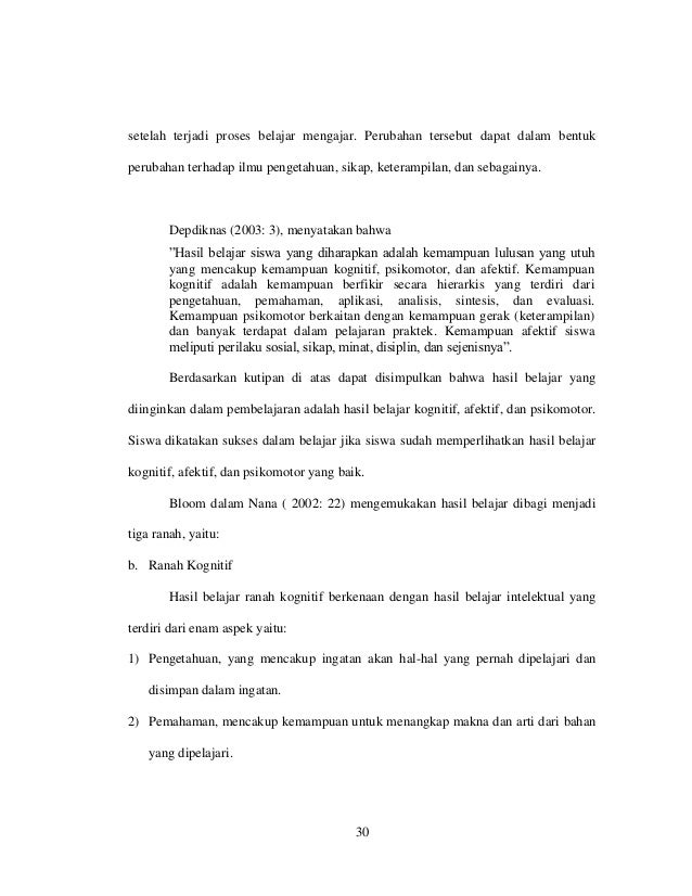 Bab Ii Kajian Pustaka A Deskripsi Teori 1 Hasil Belajar Hasil
