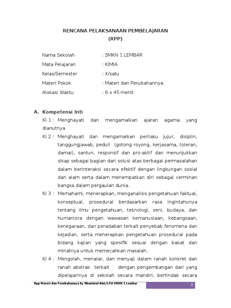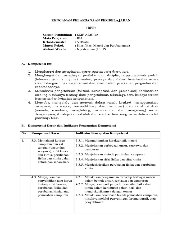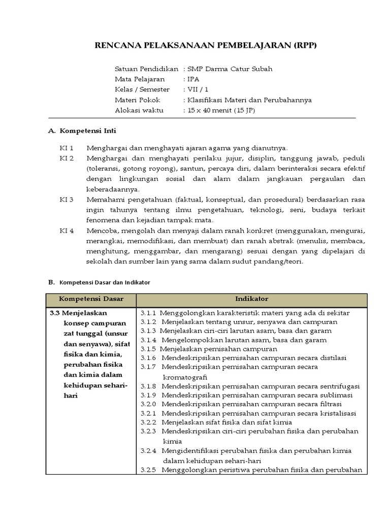 Rpp Kd 3 3 Klasifikasi Materi Dan Perubahannya